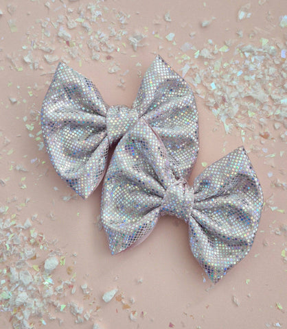 Mini Annabelle Bow-White Iridescent Disco Dot Wholesale