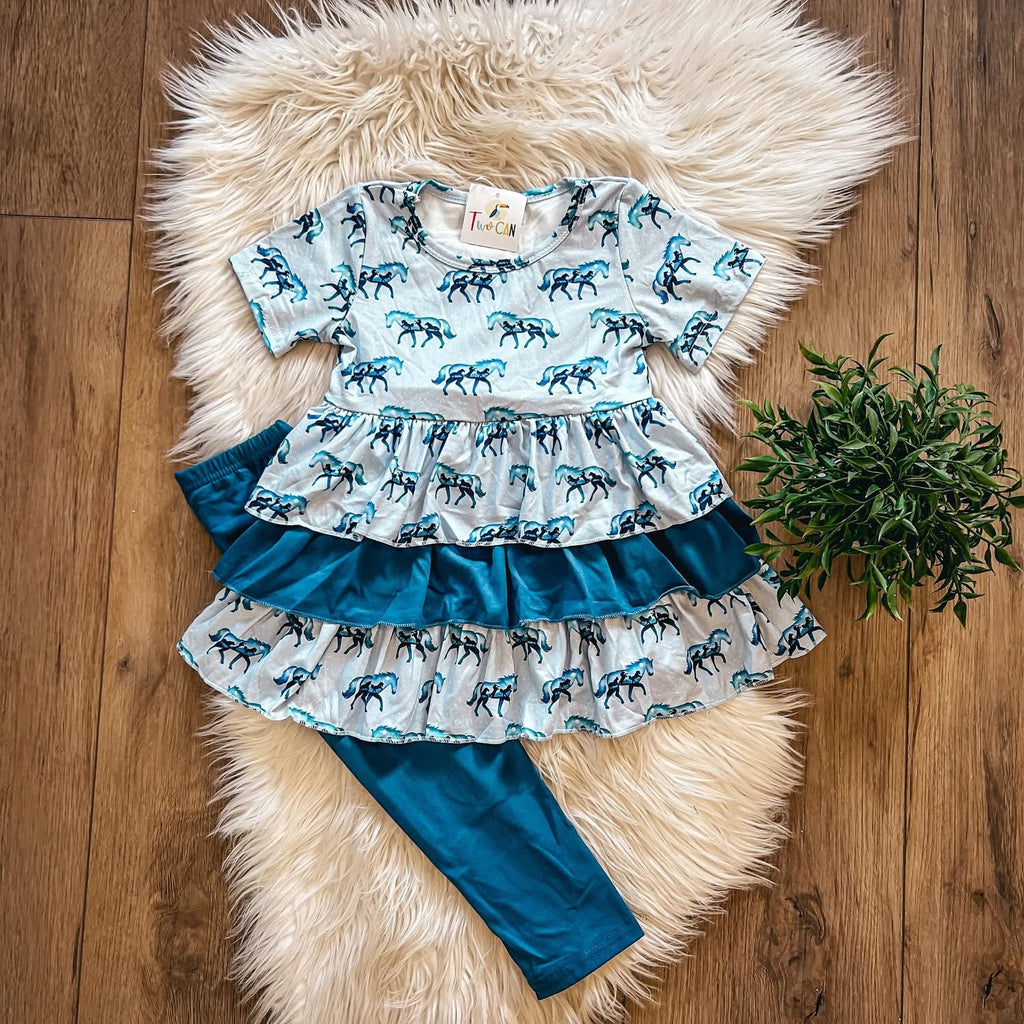 Two piece pant set. Leggings and tiered tunic top.